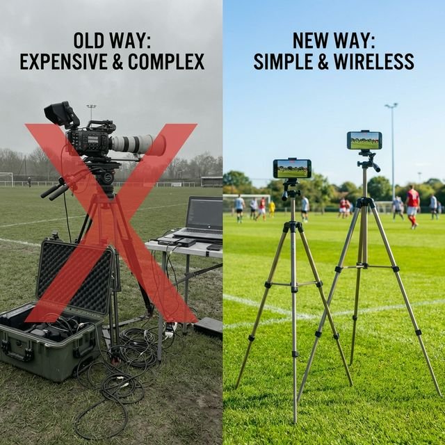 No. Two standard smartphones (Android & iOS*) are all you need.. This system replaces traditional fixed scoreboards and $1,000+ camera setups, making professional-quality highlights accessible to any local team.