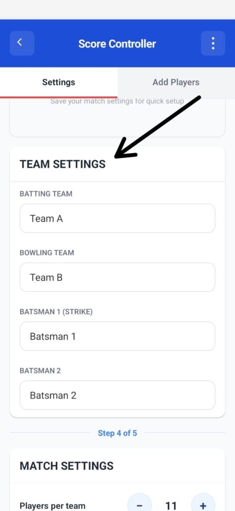 Step 4: Team Settings