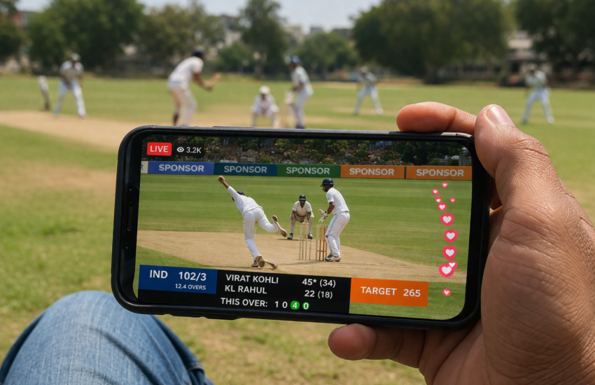 real-time score sync in sports streaming shown on mobile phone during live cricket match